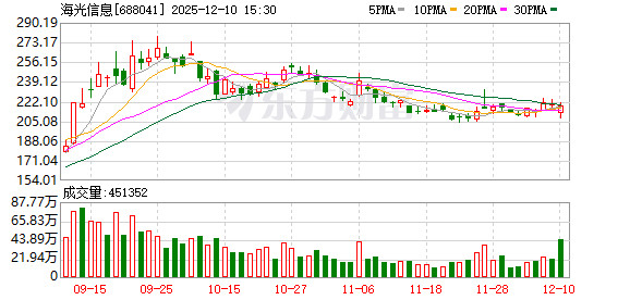 自重组方案披露以来,两家公司股价均一度大幅上涨,到9月下旬海光信息区间涨幅最高达到九成,中科曙光股价涨幅一度接近翻倍,所持海光信息股份市值甚至反超中科曙光自身市值;本次重组宣告终止后,12月10日海光信息微跌,报收218.5元/股,中科曙光股价跌停,收于90.12元/股。